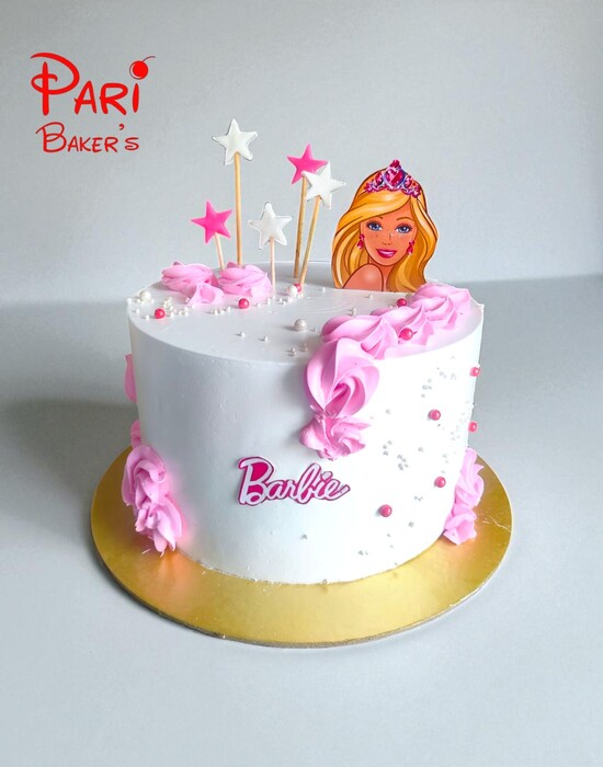 Make your little one?s birthday magical with this dazzling Barbie Star Cake! Featuring a Barbie topper surrounded by vibrant star-shaped decorations, smooth fondant layers, and playful accents, this cake brings glamour, fun, and sparkle to any celebration. Perfect for Barbie-themed parties, princess celebrations, or special occasions, it serves as a stunning centerpiece that delights kids and adults alike. Personalize it with the birthday child?s name, age, or extra decorations like glitter, flowers, or hearts for a truly unforgettable celebration!