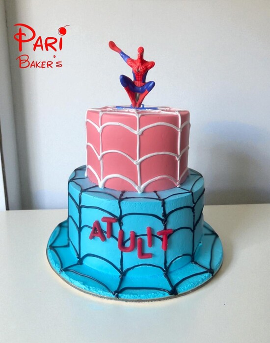 Celebrate in high-flying style with this Jumping Spiderman 2-Tier Cake! Featuring a dynamic Spiderman figure in a jumping pose atop two beautifully decorated red and blue tiers, complete with web-themed accents, this cake captures the thrill and adventure of everyone?s favorite superhero. Ideal for birthdays or Spiderman-themed parties, it serves as a stunning centerpiece that delights kids and adults alike. Personalize it with the birthday child?s name, age, or additional decorations like webs, cityscapes, or superhero symbols to make the celebration truly unforgettable!