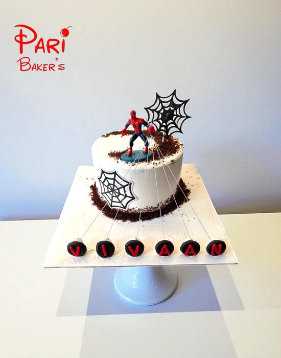 Make your celebration extra special with this Spiderman Name on Web Cake! Featuring the birthday child?s name displayed on a web design, along with Spiderman-themed decorations, red and blue fondant, and playful accents, this cake brings the excitement of the web-slinging superhero to life. Ideal for birthdays or Spiderman-themed parties, it serves as a fun and personalized centerpiece that delights kids and adults alike. Add extra details like cityscapes, webs, or superhero symbols to make the celebration truly memorable!